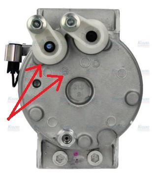 Rys. 1. Sprężarka klimatyzacji Nissens z ukazanymi portami ssania i tłoczenia