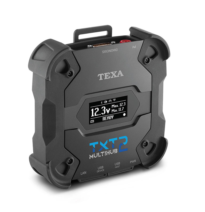 1. Interfejs diagnostyczny (np. Navigator TXT Multihub 2/Nano S 2). Umożliwia komunikację z elektroniką pojazdu i uruchamianie procedur kalibracyjnych. Bez niego nie można rozpocząć procesu, ponieważ odpowiada za połączenie z systemami pojazdu.