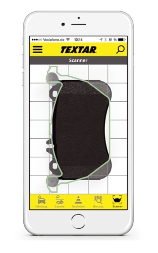 Równie innowacyjne jest zastosowanie w najnowszej wersji Textar Brakebook skanera klocków hamulcowych do rozwiązania powszechnego problemu, jakim jest identyfikacja klocka hamulcowego. Teraz jest to możliwe dzięki określeniu jego kształtu. Wystarczy zrobić zdjęcie klocka hamulcowego smartphonem lub tabletem i przesłać je do aplikacji, aby otrzymać informację zwrotną na temat numeru części i wszystkich informacji na jej temat.