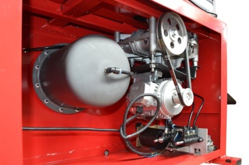 - Uruchamiamy kilkukrotnie mechanizm zbijaka naciskając właściwy pedał, w celu spuszczenia ciśnienia sprężonego powietrza z instalacji pneumatycznej montażownicy.