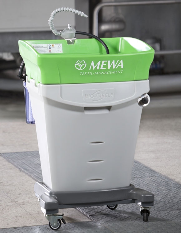 Mewa Bio-Circle to stół do ręcznego czyszczenia części, dostępny zarówno w wersji mobilnej (Mini), jak i stacjonarnej (Maxi).