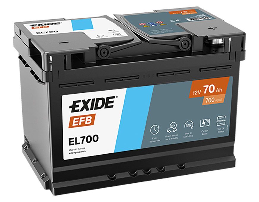 Akumulatory EFB to kolejne rozwiązanie dedykowane systemom wspomagającym w pojazdach xEV. Charakteryzują się wysoką akceptacją ładunku przez cały okres użytkowania, a także dużą trwałością cykliczną podczas pracy przy obniżonym stanie naładowania. Podobnie jak AGM, akumulatory EFB firmy Exide oferują zoptymalizowany odzysk energii z hamowania regeneracyjnego, zapewniając maksymalne oszczędności paliwa i mniejszą emisję CO₂.