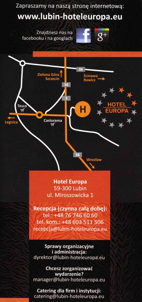 - 11.30 – 12.00 – przejazd autobusem Zawisza do hotelu Europa,