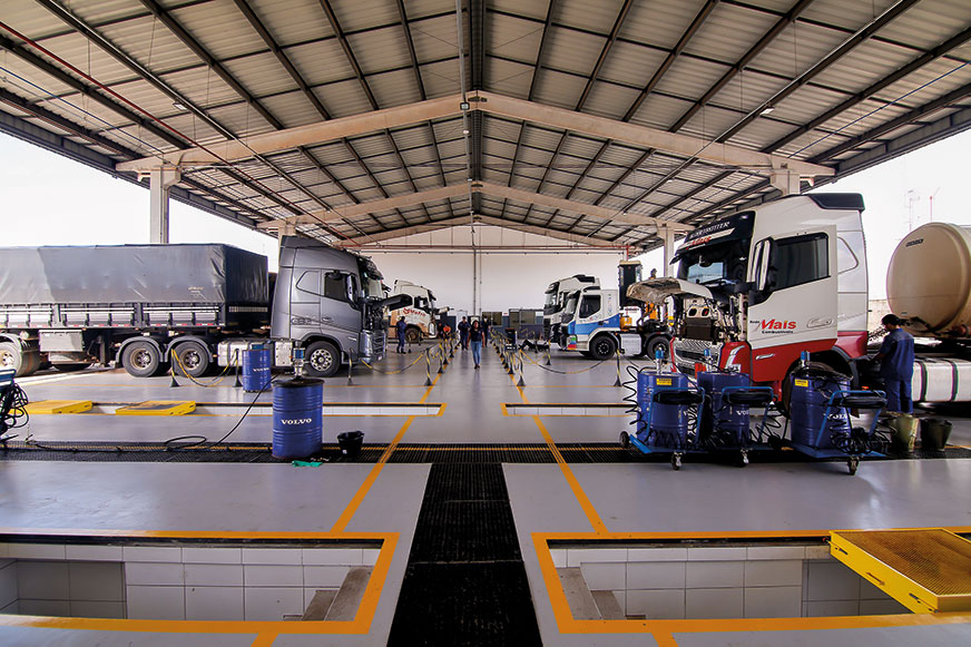 Brazylijskie warsztaty dla ciężarówek są duże i przestronne. To efekt ogromnego udziału transportu drogowego w przewozach