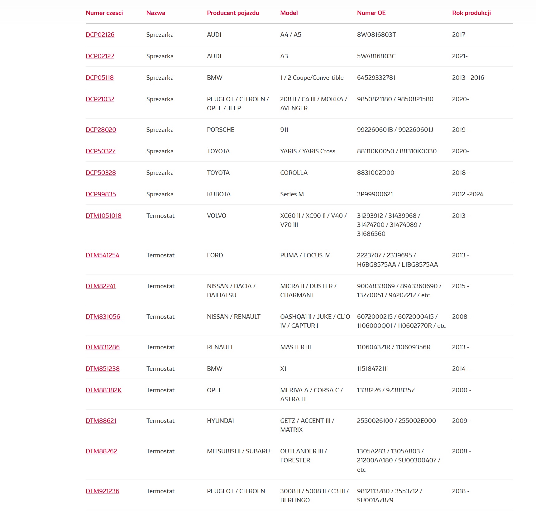 Rozszerzenie składa się z 8 sprężarek klimatyzacji i 10 termostatów. Nowe części mają łącznie 780 zastosowań, m.in. w pojazdach marek Audi, BMW, Ford, Nissan, Opel, Porsche, Toyota i Volvo. Szczegółowe informacje o nowych częściach i pełna lista zastosowań są już dostępne w e-katalogu DENSO i w katalogu TecDoc.