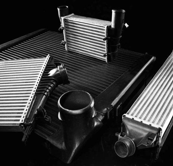 Oprócz turbosprężarki silniki te najczęściej wyposażone są dodatkowo w chłodnicę powietrza (intercooler). Zastosowanie intercoolera w silniku z doładowaniem znacząco podnosi jego moc. Intercooler redukuje temperaturę sprężonego przez turbinę bądź kompresor powietrza, przez co zapewnia zasilanie silnika w schłodzone powietrze o większej gęstości, niosące więcej cząstek tlenu w jednostce objętości. Rezultat – większa moc bez konieczności zwiększania pojemności skokowej silnika. Dobrej jakości, wydajny intercooler wyposażony jest w rurki, które posiadają wewnątrz przestrzenne struktury zawirowujące powietrze i zwiększające powierzchnię czynną rurki, tzw. turbulatory.