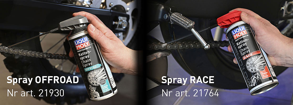 Choć często niedoceniany, łańcuch napędowy to element, który decyduje o kulturze jazdy i trwałości całego układu. Dwa nowe spraye LIQUI MOLY – Motorbike Chain Spray Offroad (21930) i Motorbike Chain Spray Race (21764) – tworzą kompletny duet dla każdego typu motocykla.