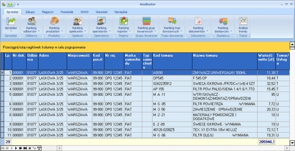 - przeprowadzanie analiz zakupów i sprzedaży (m.in. rankingi odbiorców i dostawców, towarów, grup towarowych),