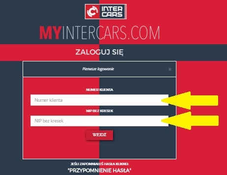 Krok 2: We wskazane miejsca wpisz swój NUMER KLIENTA i NIP KLIENTA i wciśnij WEJDŹ.