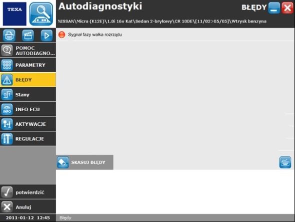 Podłączając sprzęt diagnostyczny, Navigator TXC produkcji Texa, odczytujemy: