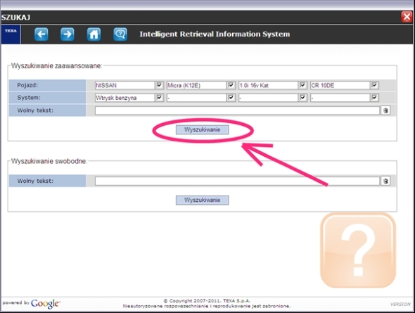 Istnieje możliwość wyszukiwania konkretnego samochodu, systemu lub też wyszukanie swobodne bez konieczności określenia pojazdu. Klikamy wyszukiwanie.