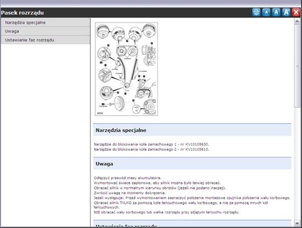 Informacja zawierająca pełen opis wymiany rozrządu (oprogramowanie IDC4 Car Plus).