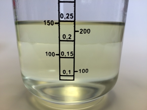 3. Olej PAG 46 oraz PAO 68 zmieszane, po upływie ok 1 godziny – widoczne ponowne rozwarstwienie.