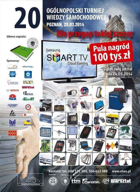 Aby wziąć udział w Ogólnopolskim Turnieju Wiedzy Samochodowej należy zarejestrować się na stronie www.otws.pl do dnia 24.03.2014 r.