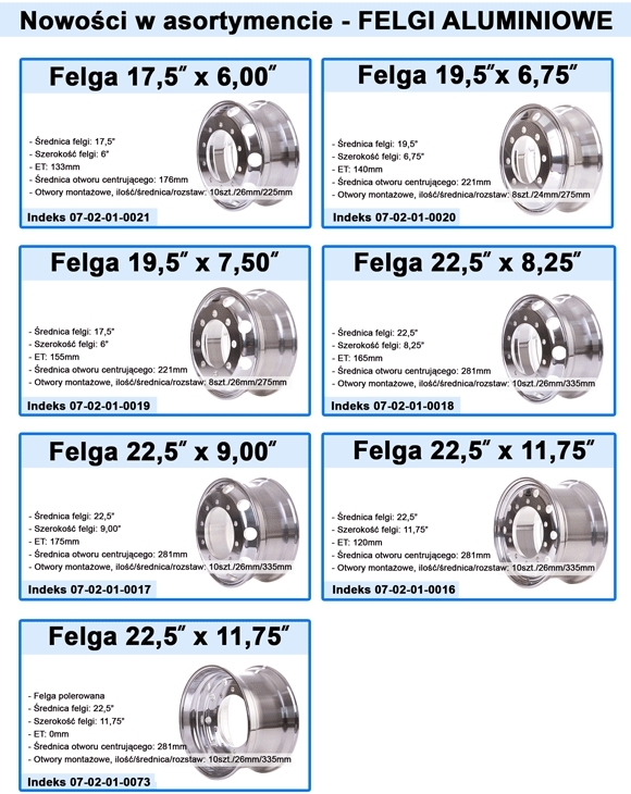 W ofercie są felgi o średnicach 17,6”, 19,5” i 22,5”.