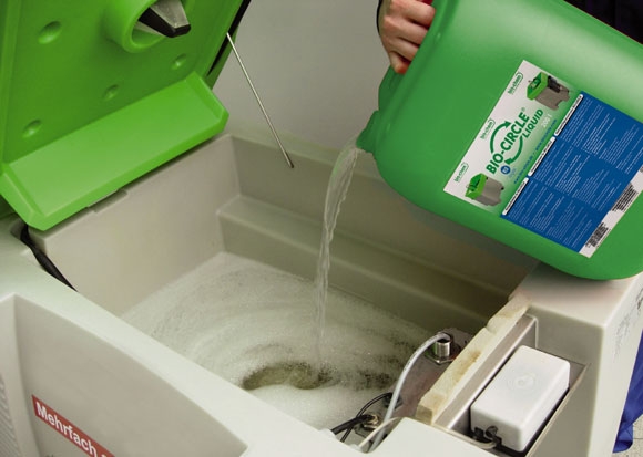 Mewa Bio-Circle to stół do ręcznego czyszczenia części, dostępny zarówno w wersji mobilnej (Mini), jak i stacjonarnej (Maxi).