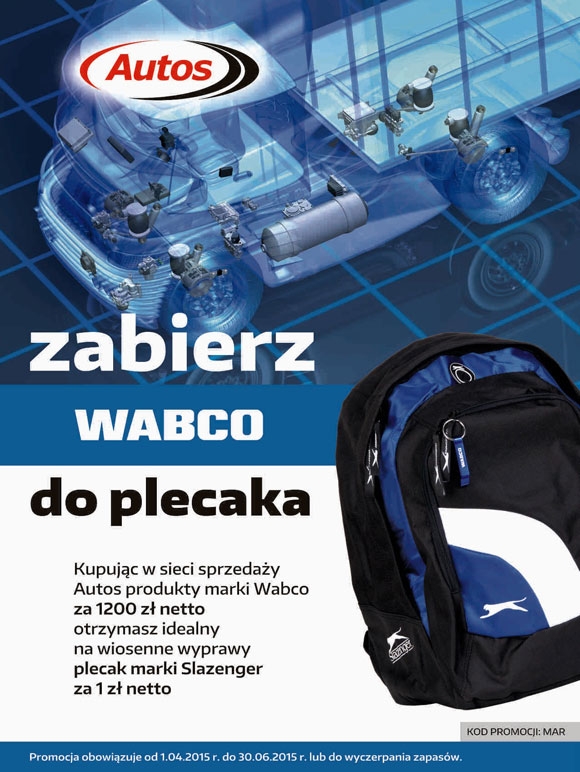 Plecak marki Slazenger za 1 zł netto dostaną z kolei klienci, którzy w sieci Autos dokonają zakupów produktów Wabco za 1200 zł netto.