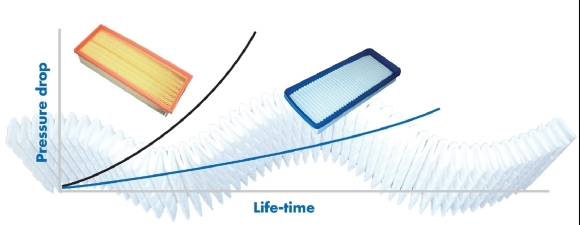 Spadek ciśnienia powietrza za filtrem prowadzi do zwiększenia zapotrzebowania na źródło energii/paliwo, aby osiągnąć założone parametry mocy i momentu. Kiedy przepustowość filtra maleje w wyniku zatkania się zbyt dużą liczbą zanieczyszczeń, wzrasta zapotrzebowanie na paliwo. Jest to bezpośrednią przyczyną zwiększenia się emisji CO2. W takim rozumieniu problemu tradycyjne filtry nie spełniają parametrów filtracji i trwałości w sposób należyty. W przeciwieństwie do nich w pełni syntetyczne filtry micronAir, poprzez progresywną strukturę wysoko wydajnego medium filtrującego, cechują się zarówno najwyższym stopniem skuteczności filtrowania, jak również brakiem spadku przepływu powietrza wskutek przejechanych kilometrów.