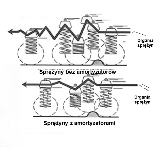 w tłoku. Im intensywniejsze są ruchy wywołane koleiną, tym większy opór stawia amortyzator.