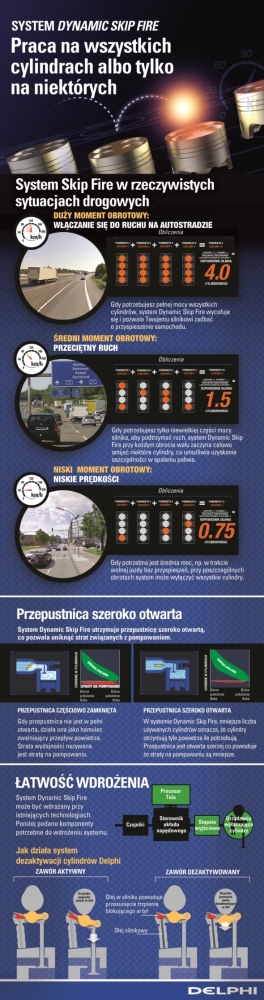 - Wyobraźcie sobie, że jedziecie autostradą, poruszając się swoim GMC Yukon Denali z prędkością 110 km/h – mówi Jeff Owens, dyrektor ds. technologii w Delphi Automotive. - Aby utrzymać taką prędkość, potrzebujecie jedynie około 30 koni mechanicznych. To jedynie mała część z 403 koni mechanicznych, które może zapewnić silnik V-8 (...) Twój silnik już nie musi działać na z góry określonej liczbie cylindrów. Firma Tula wprowadziła na rynek silnik o stale zmieniającej się liczbie cylindrów. Liczba cylindrów, w których odbywa się zapłon, może zmieniać się od zera do ośmiu.