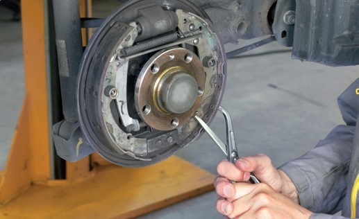 1. Sprawdzić bęben hamulcowy pod kątem zużycia i uszkodzeń. Zmierzyć średnice. Nowy wymiar plus 0,5 mm maksymalnej średnicy może być wykorzystany tylko ze szczękami nadwymiarowymi. W zależności od wersji wymieniane są również łożyska koła i/lub pierścienie czujnika.