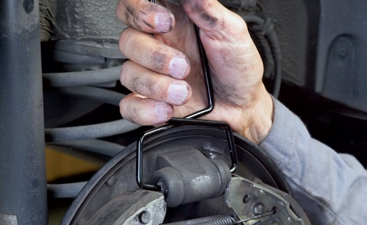 5. Przy demontażu szczęk hamulcowych zabezpieczyć cylinderki odpowiednim narzędziem.