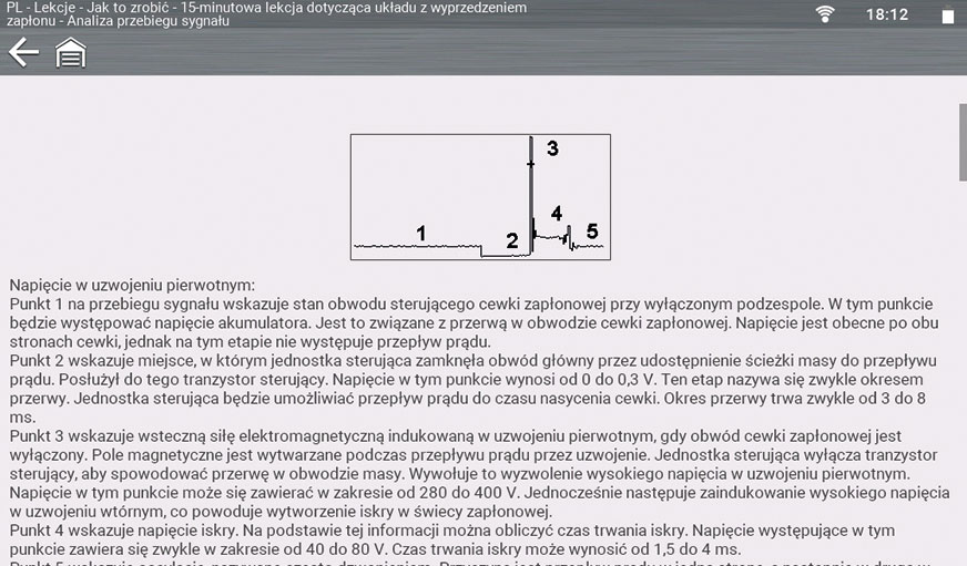 Dodatkowo PDL8100 zawiera moduły szkoleniowe i encyklopedię wiedzy, m.in. o układzie zapłonowym i sposobach jego diagnozowania (rys. 10).