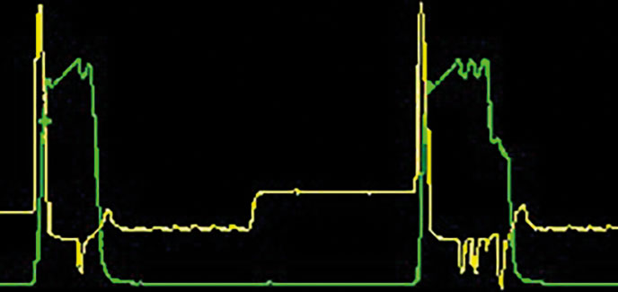 Pomiary oscyloskopowe w testerze PDL8100 oparte są na gotowych procedurach pomiarowych, urządzenie prowadzi użytkownika przez proces krok po kroku. Oscyloskop jest automatycznie skonfigurowany pod konkretny pomiar i podzespół, który chcemy zdiagnozować, wyświetlane są sygnały wzorcowe oraz informacje o najbardziej prawdopodobnych przyczynach usterki.