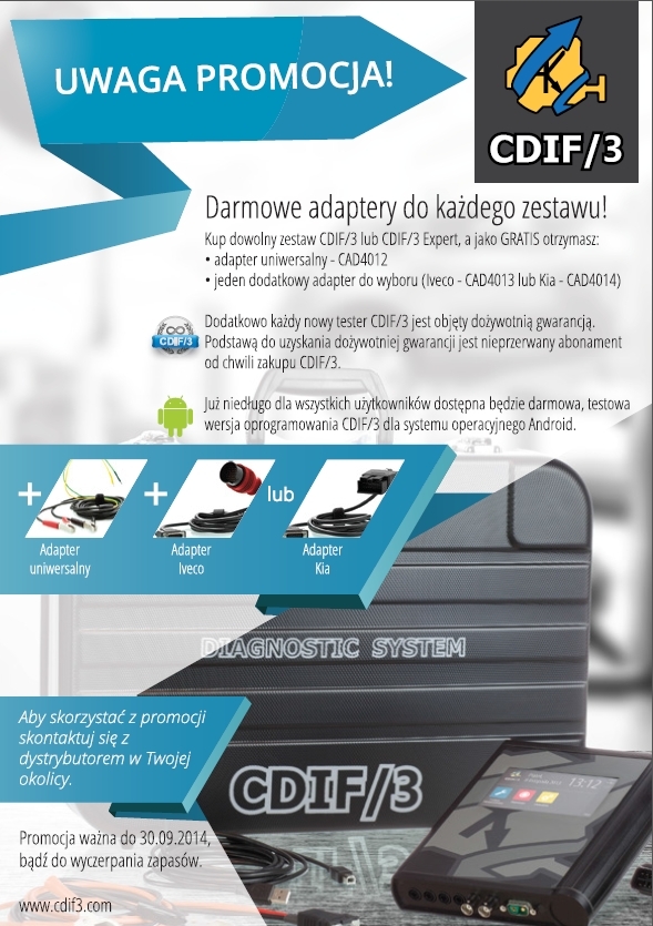 Jeśli zdecydujemy się do końca września na zakup dowolnego zestawu CDIF/3, jako gratis otrzymamy dwa adaptery – jeden uniwersalny (CAD4012) oraz do wyboru: Kia (CAD4014) lub Iveco (CAD4013).