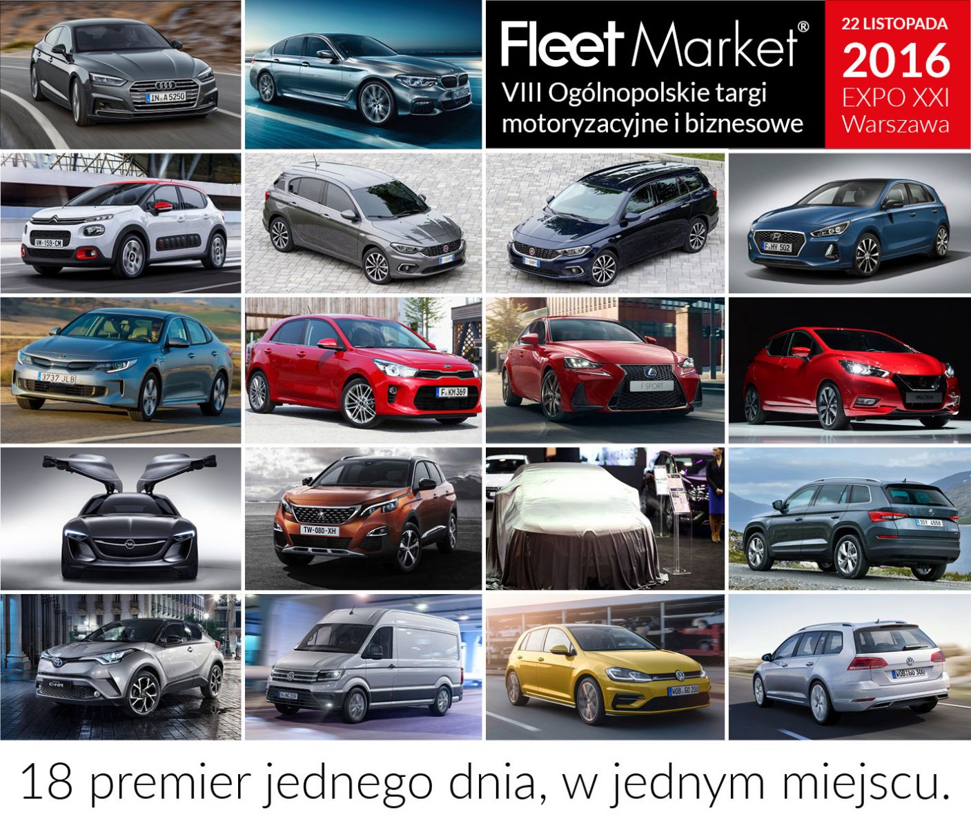VIII Ogólnopolskie Targi Motoryzacyjne i Biznesowe Fleet Market 2016 - odbędą się 22 listopada br. (wtorek) w Centrum EXPO XXI przy ul. Prądzyńskiego 12/14 w Warszawie.