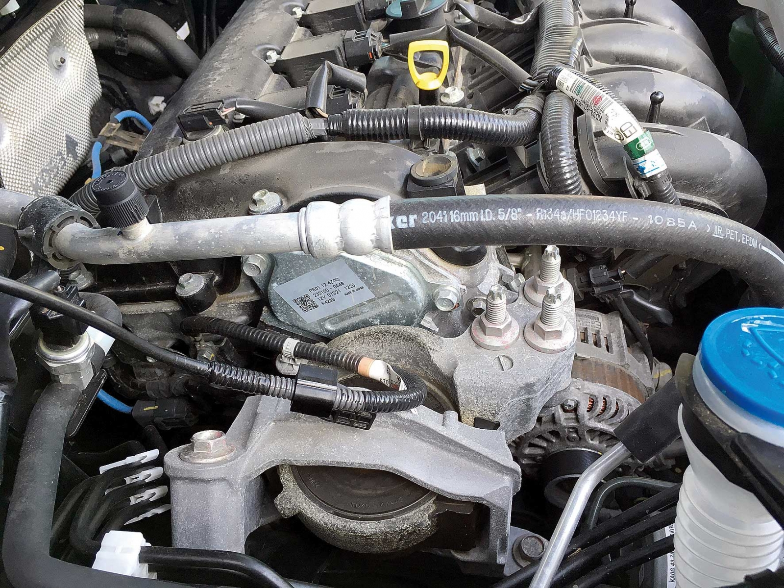 3. Sporych rozmiarów silnik regulatora zmiennych faz rozrządu zaworów dolotowych to cecha charakterystyczna dwulitrowego silnika pojazdu marki Mazda z technologią Skyactiv-G
