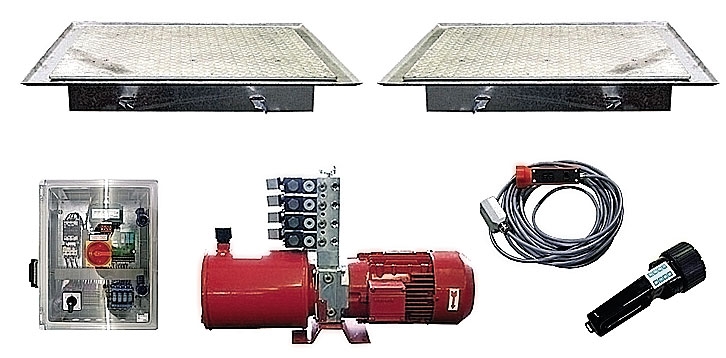 Rys. 1. Elementy urządzenia GST 2300 (z napędem hydraulicznym) do wymuszania szarpnięć kołami jezdnymi pojazdu (źródło: Cartec)