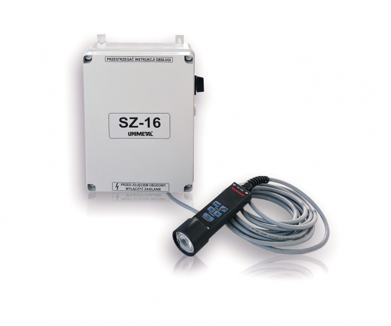 Rys. 8. Szafka zasilająca i przewodowa lampa sterująca uniwersalnego detektora luzów SZ-16 (źródło: Unimetal)
