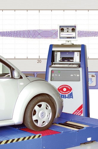 Rys. 4b. Stanowiska do badania zawieszenia metodą drgań wymuszonych według testu Boge (źródło: Maha): samodzielne stanowisko z kolumną sterowniczą i wyświetlaczami