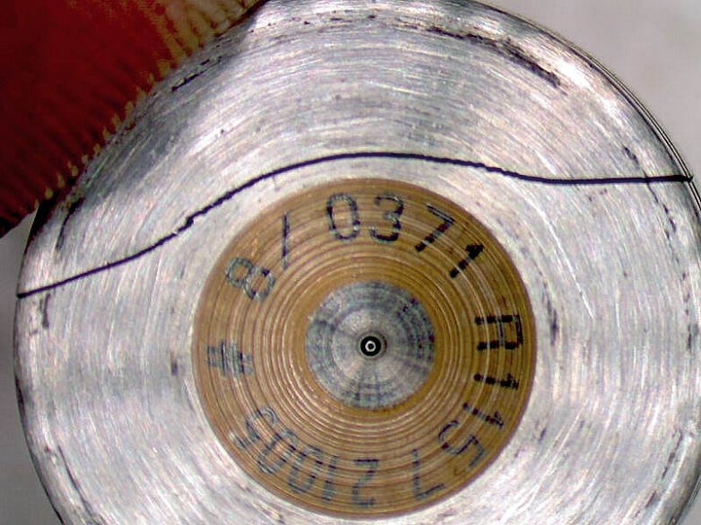 fot. 15 Pęknięcie główki zaworka (fot. 15, 16, 17) – na skutek zmiany parametrów na sterowniku silnika – tuning. Skutek: nieszczelność wtryskiwacza, przelewanie nadmiarem, błędy ciśnienia w szynie Rail, nierówna praca, brak możliwości uruchomienia silnika