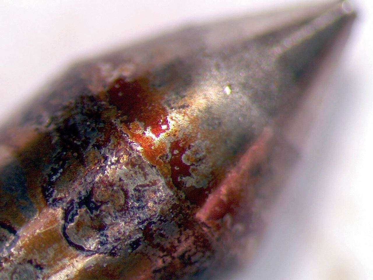 fot. 24 Zużycie iglicy rozpylacza (zużycie stożka iglicy, zatarcie iglicy rozpylacza) (fot. 24, 25, 26, 27). Skutek: zwiększone spalanie, nierówna praca (praca stukowa), dymienie, niekiedy przedostawanie się paliwa do oleju silnikowego, w nowszych systema