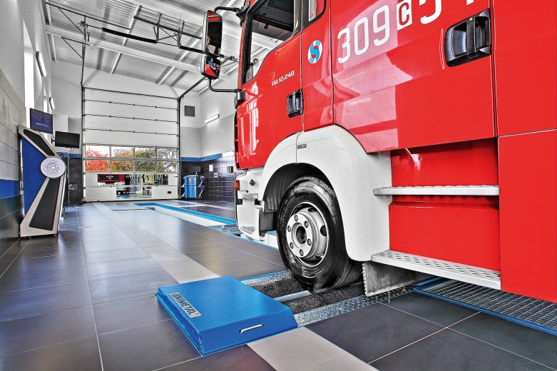 Rys. 8. Badanie skuteczności i równomierności działania hamulców na urządzeniu rolkowym wchodzącym w skład uniwersalnej linii diagnostycznej Uniline Quantum Galaxy