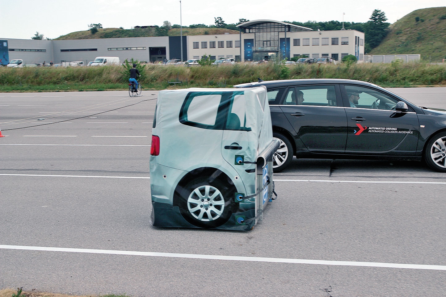 Gdy w scenariuszu wtargnięcia na jezdnię przez uczestnika ruchu droga hamowania miałaby się okazać za krótka, aktywuje się układ kierowniczy, który zrealizuje optymalną trajektorię manewru ominięcia przeszkody
