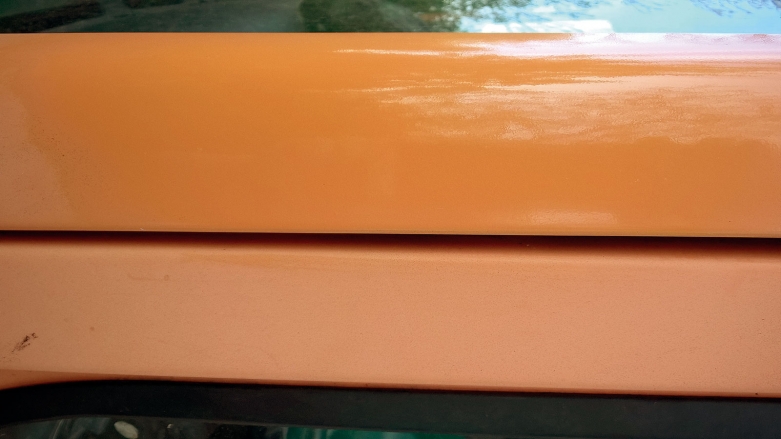 Różnica w wyglądzie elementu nadwozia z wypolerowanym i niewypolerowanym lakierem