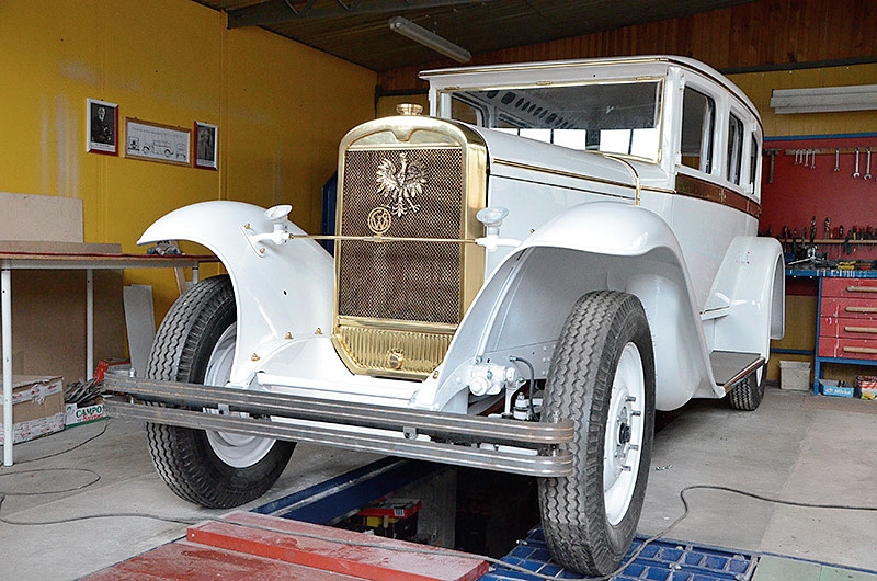 Na przodzie samochodu znajduje się złoty orzeł wyeksponowany niczym galion na statku