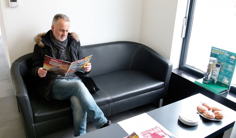 Marek Lewicki, którego spotkaliśmy w warsztatowej poczekalni, z usług Bosch Service Polanowski korzysta regularnie od 5 lat. Dziś przyjechał na przegląd płynów i wymianę oleju. – Są uczciwi i rzetelni. Jeżeli mam jakikolwiek problem z autem, zawsze przyje