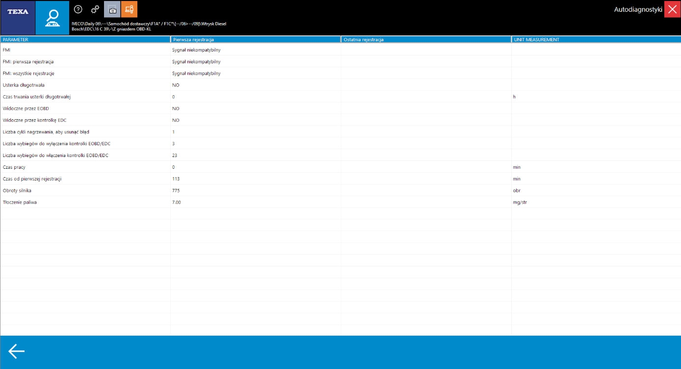 Przykład problemu z call center Texa dla Iveco Daily 06 – szczegółowe dane dotyczące odczytanego błędu