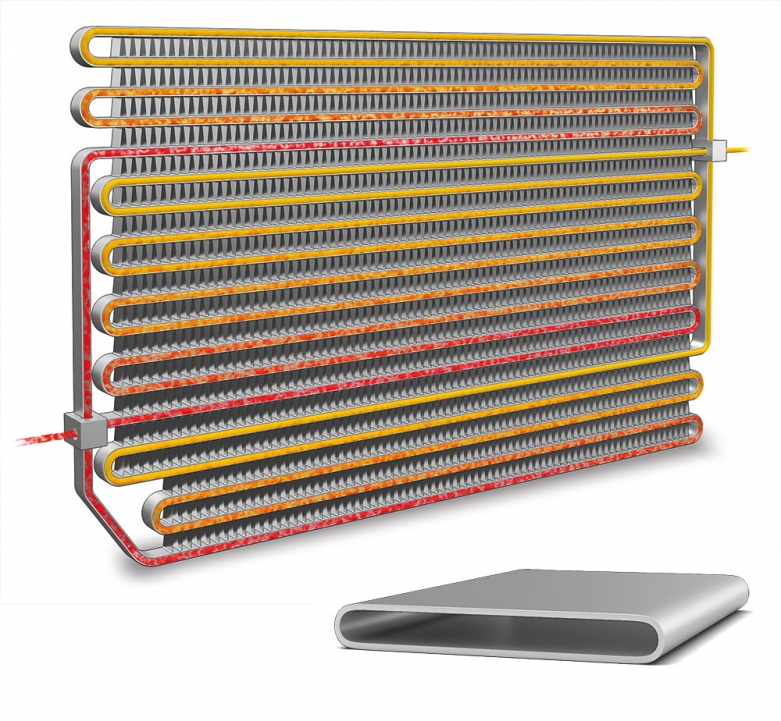 Skraplacze o budowie szeregowej mają jedną, uformowaną w kształt serpentyny rurkę, która bezpośrednio łączy króciec wejściowy z wyjściem ze skraplacza