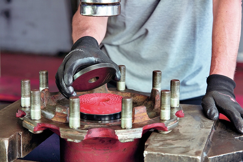Montaż rozpoczynamy od umieszczenia zewnętrznego pierścienia FAG SmartSET na piaście koła, by wcisnąć moduł przy użyciu dołączonego narzędzia. W tym celu zaleca się umieszczenie dodatkowej płytki metalowej odpowiedniego rozmiaru pomiędzy narzędziem a pras