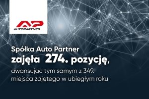 Spółka akcyjna Auto Partner zajęła 274. miejsce w rankingu 1000 Największych Firm w Polsce publikowanym na łamach „Gazety Finansowej”. To dla nas awans z 349. miejsca zajętego w roku ubiegłym....