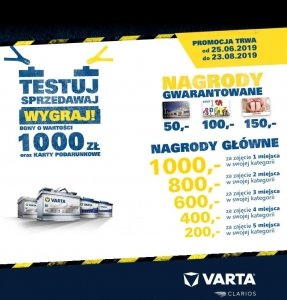 - Ruszyliśmy z letnią edycja PROMOCJI BONOWEJ organizowanej w ramach Programu Bezpłatnego Testowania Akumulatorów - informuje VARTA.Celem letniej edycji Promocji Bonowej, która trwa w okresie...