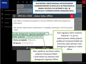 Począwszy od najnowszej wersji oprogramowania TRUCK 47 istnieje możliwość wykonywania do 5 zaawansowanych regulacji i kalibracji nawet w przypadku braku dostępu do Internetu.Używanie Kodu Specjalnego w trybie...