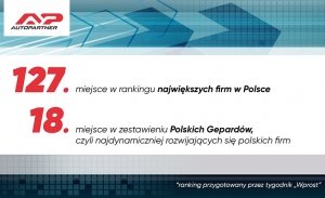 127. pozycja w rankingu największych firm w Polsce to nie jedyny sukces Auto Partner. Spółka pochwaliła się również zaszczytnym 18. miejscem w zestawieniu Polskich Gepardów.Polskie Gepardy to...