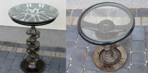 Felga, kierownica, opony, tarcze sprzęgła czy tarcze hamulcowe - drugie życie tym elementom daje Piotr Michalak. Konstruuje z nich meble. Najczęściej są to niewielki stoliki.Niewielką część jego kolekcji...