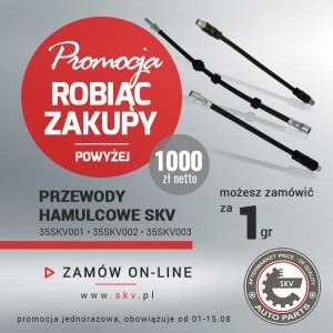 Z przyjemnością informujemy, że już od 1 sierpnia rusza dwutygodniowa promocja na przewody hamulcowe marki SKV. Przy zamówieniu powyżej 1000 zł netto można jednorazowo zakupić 3 sztuki przewodów...